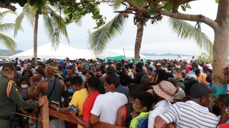 La Defensoría del Pueblo de Colombia informó que hay unos 19.000 migrantes (un número récord) varados en la ciudad de Necoclí, a la espera de un turno para cruzar a Panamá, país que permite la entrada de 250 por día por motivos sanitarios.