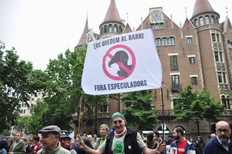 Solo en Barcelona hay unas 10.000 viviendas o pisos vacíos. Después del colapso de 2008, los precios de las propiedades se desplomaron y la especulación se disparó. Dado que la falta de vivienda sigue siendo un gran problema, los bienes raíces desocupados son una fuente de quejas, especialmente porque la mayoría de ellos pertenecen a grandes empresas.