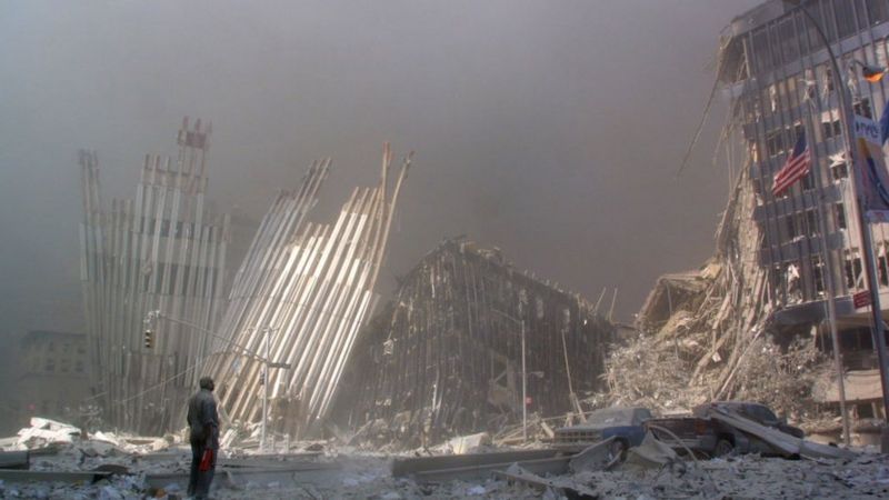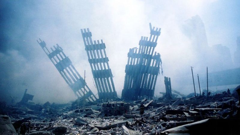Ambos edificios se esfumaron en cuestión de segundos, pero el fuego entre los escombros siguió ardiendo durante 100 días.