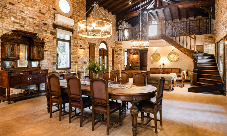 Pero la joya de la villa es su bodega subterránea de 65 metros cuadrados con comedor privado, que ofrece una experiencia culinaria única. Este refugio de lujo luce madera y piedra de la Sierra Pintada de San Rafael, combinando el encanto rural con la sofisticación moderna.