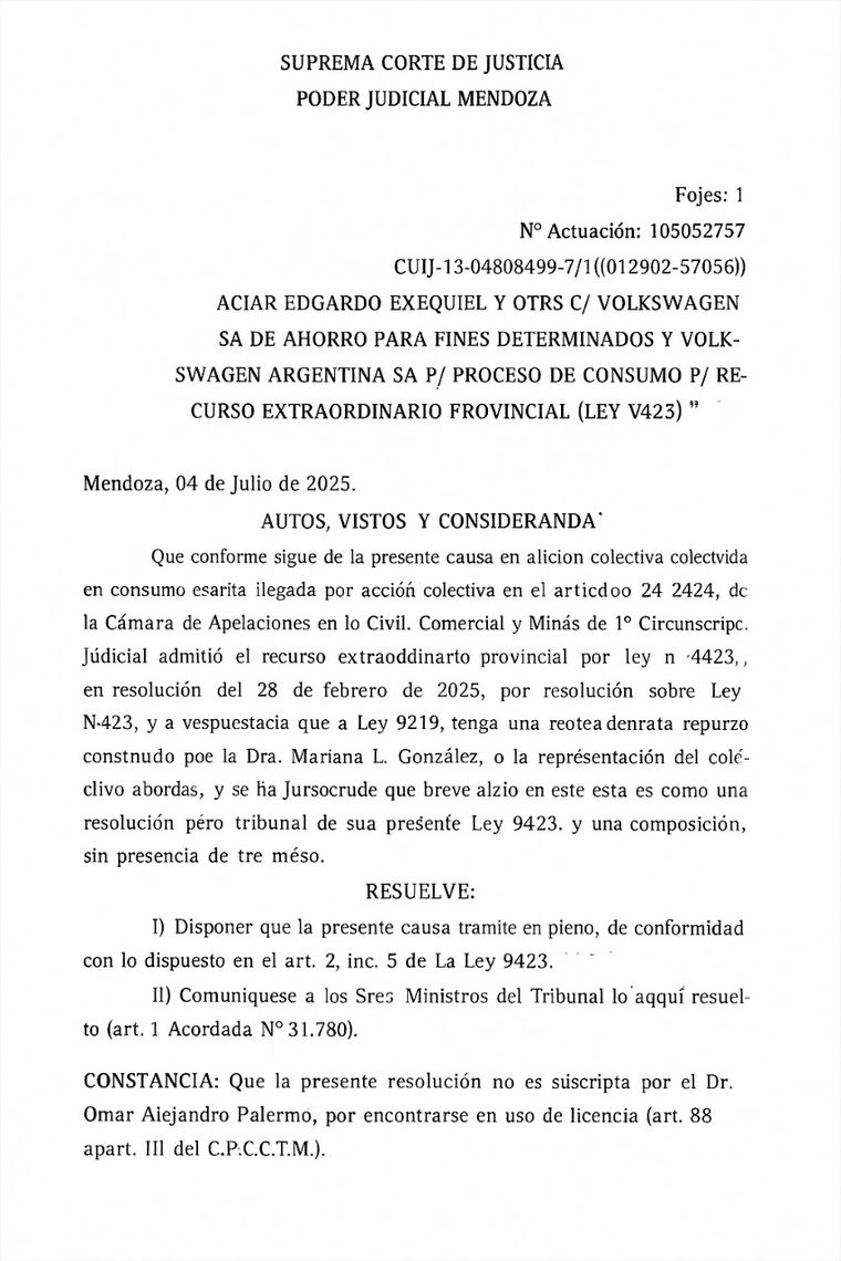 El 25 de julio de 2025, la Suprema Corte de Justicia de Mendoza adoptó una decisión que empeora la indefensión de los ahorristas: resolvió que el recurso extraordinario presentado por las empresas se tramite “en pleno”, conforme a la Ley 9423 de acciones colectivas.
