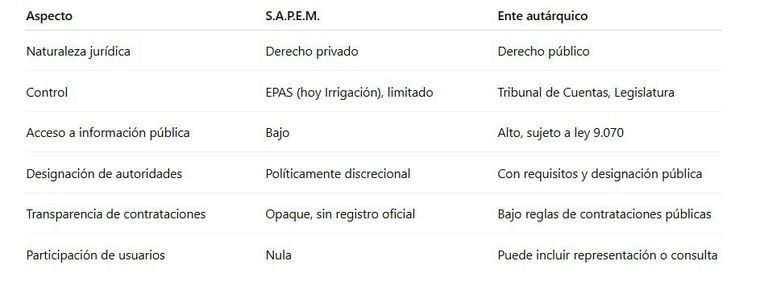 No estamos inventando nada nuevo: así funcionan los organismos que dan resultados y rinden cuentas. Lo que no puede sostenerse más es esta figura híbrida, opaca y politizada, donde la gestión del agua queda secuestrada por el partido de gobierno de turno, sin control, sin eficiencia y sin planificación.