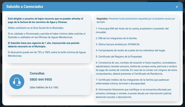 El beneficio tiene vigencia de un año. Una vez vencido, tenés que volver al municipio para renovarlo. Si no lo hacés, AySAM vuelve a cobrarte tarifa plena sin previo aviso.
