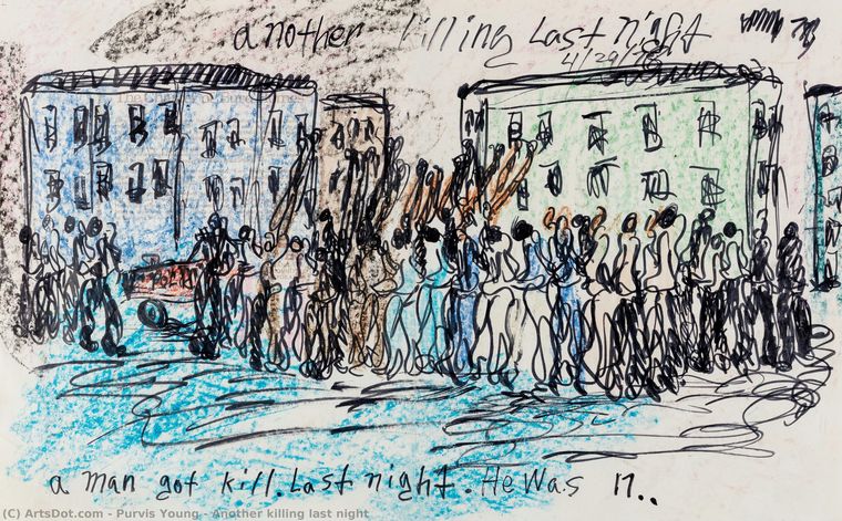 Purvis Young falleció en abril de 2010 cuando apenas tenía 67 años conociendo la paradoja del arte contemporáneo como hacedor que desde la mayor pobreza y en base a una obra sólida devino en uno de los más respetados y bien cotizados del mundo entero.