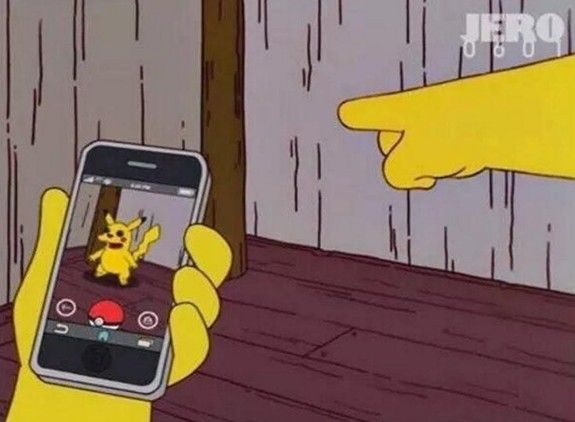 El juego Pokémon Go ha representado una de las tendencias más populares del año y esta foto trata de mostrar que los Simpson lo predijeron. Sin embargo, se trata de una captura de pantalla manipulada con Photoshop: la imagen original muestra solo un dedo apuntando a un rincón vacío.