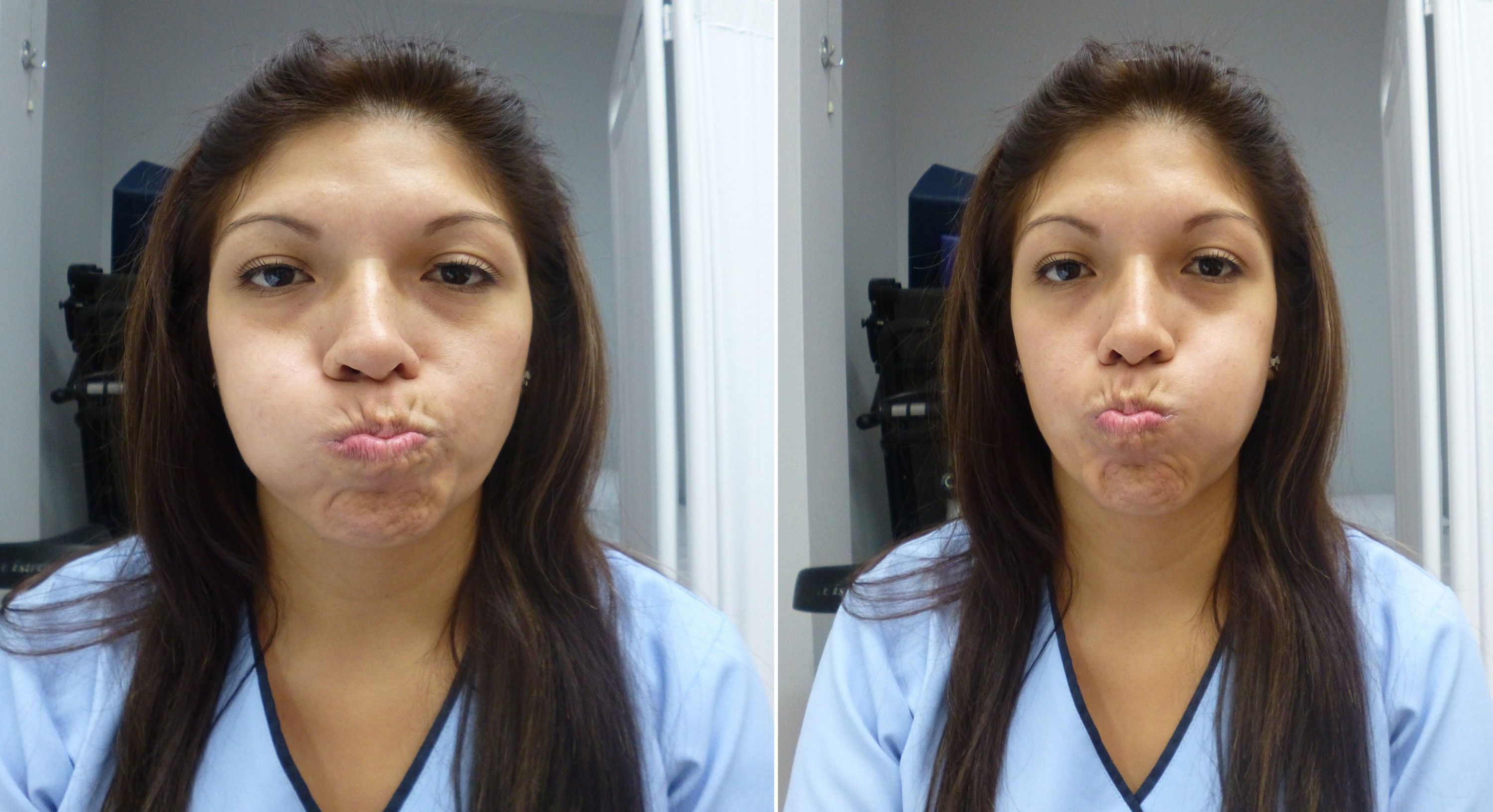 3-Infla los cachetes: También conviene repetir este ejercicio cinco veces al día y mantener la posición durante 10 segundos por cada cachete, en este caso consiste en inflar alternativamente el derecho y el izquierdo.