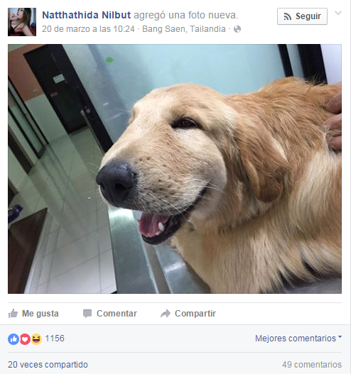 Las imágenes fueron compartidas por la usuaria de Facebook, Natthathida Nilbut, quien escribe que a pesar de que su mascota estaba en el veterinario siendo atendido, el seguía de buen ánimo y demostrando afecto.