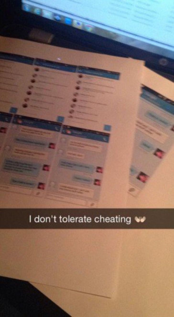 Las fotos de la conversación que mantenía en hombre infiel con una frase escrita por la mujer: “No toleraré que me engañen”.