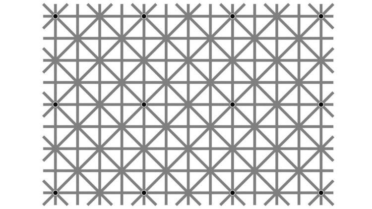 Por ello, en la ilusión de los doce puntos negros solo conseguiremos ver aquellos en los que centremos la mirada y los que quedan en los márgenes de nuestro campo de visión desaparecerán.