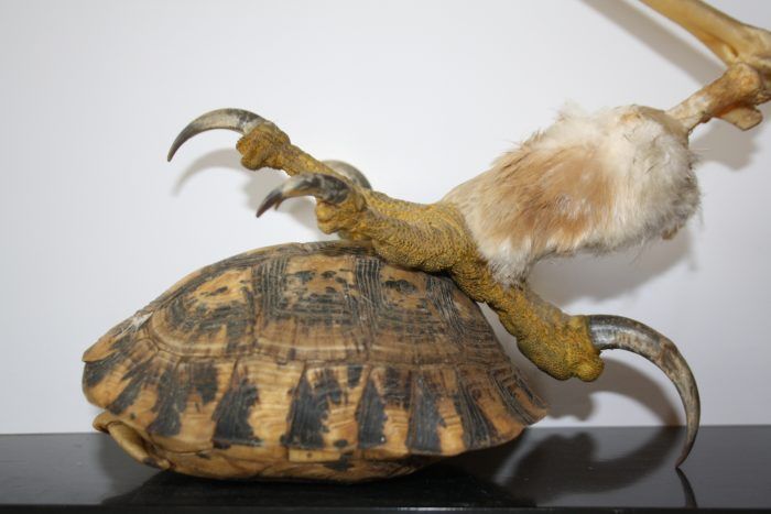 Esquilo fue advertido por el oráculo, de que una casa caería encima de su cabeza y esto le ocasionaría la muerte. Asustado por esto se fue a vivir al bosque. Un día mientras caminaba, un águila confundió su cabeza (calva) con una piedra, y lanzó una tortuga, que le causó la muerte.