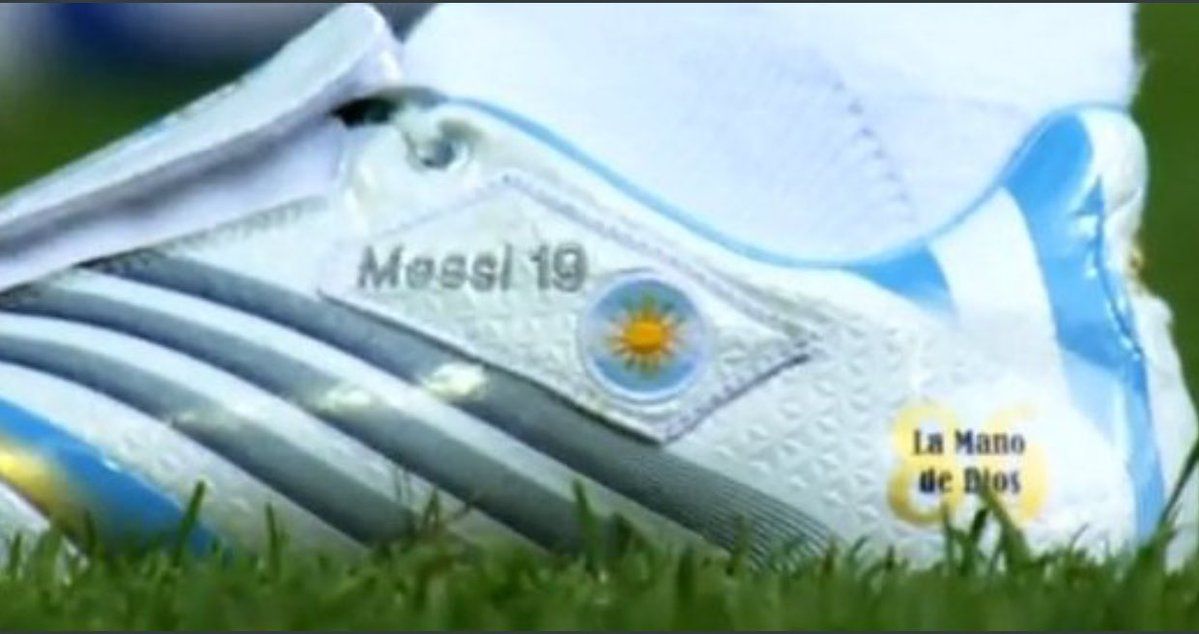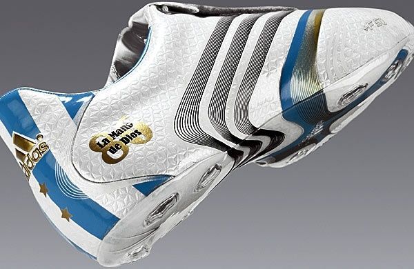 "La Mano de Dios", se leían en sus botines blancos hechos por Adidas, los recordados +f50 que eran toda una tendencia para esa época.