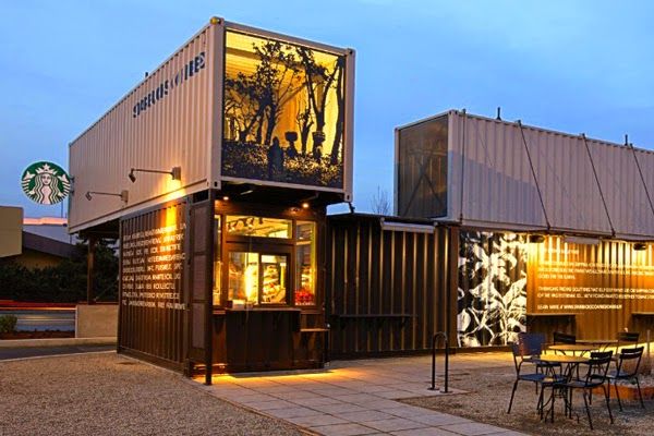 Hasta ahora solo hemos visto viviendas hechas de contenedores de transporte pero también existen comercios, como esta cafetería de Starbucks, y hasta centros comerciales. La idea de construir este auto-Starbucks surgió de la intención de aprovechar los contenedores que tanto usan para distribuir su café alrededor del mundo.