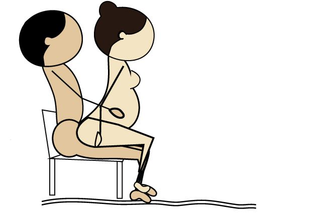 Él se inclina en el siguiente escalón y ella se sienta. Así, el acoplamiento del cuerpo se da de forma natural.