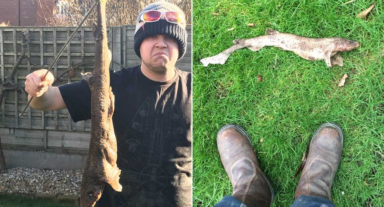 "Estaba preparando un té cuando mi papá entró visiblemente perplejo" y preguntó a James Hill qué tiburón tiene nariz redondeada y manchas pardas, "porque hay uno en nuestro jardín de atrás".