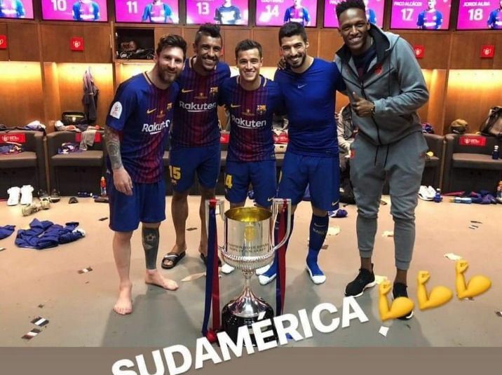 El pasado sábado el F.C. Barcelona ganó la Copa del Rey de España al golear en la final al Sevilla F.C. por 5-0 en el estadio Metropolitano de Madrid. En el marco de las celebraciones, los jugadores sudamericanos del conjunto catalán difundieron una fotografía en las redes sociales que se ha vuelto viral.