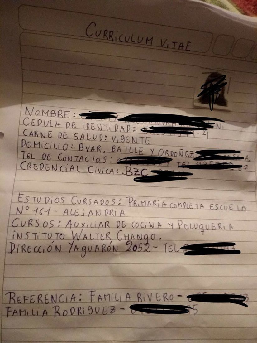 Una joven diseñadora gráfica de Uruguay ha compartido en su cuenta de Twitter una foto de un humilde currículum escrito a mano que le llegó de una mujer que buscaba empleo, según recogen los medios argentinos.