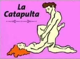 La catapulta. La mujer tiene que elevar las caderas mientras se arrodilla y deja que ella apoye los glúteos contra él y ella extiende las piernas en el torso de él.