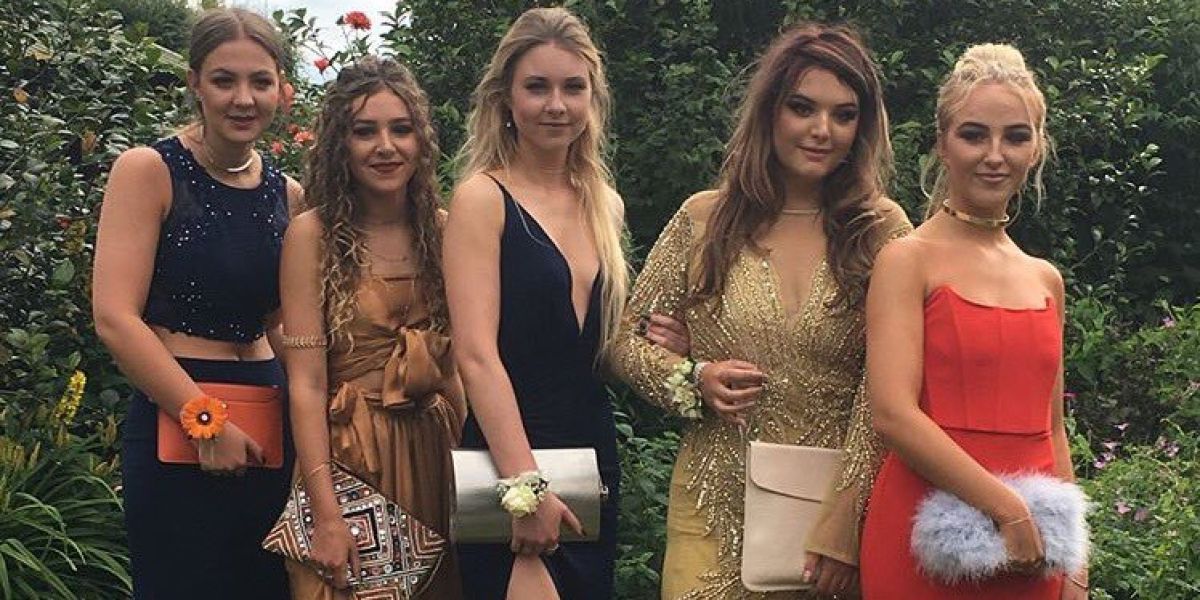 A primera vista, se trata de una foto de graduación más: cinco amigas, elegantemente vestidas y listas para ir al baile. Sin embargo, algo no debería estar ahí y, sobre todo, no debería haber estado en el interior del baile, ya que está terminantemente prohibido.