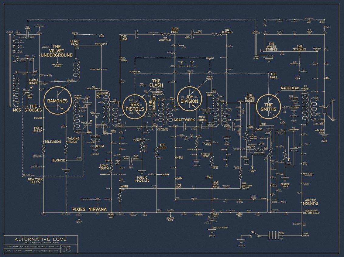 La historia de la música alternativa tiene un intrincado mapa para conocer los caminos que fueron llevando a lo largo del tiempo. Lo publicó el portal Wired, en donde podés ver la historia completa.