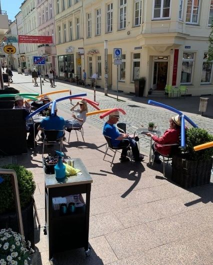 El Café Rothe, ubicado en la ciudad Schwerin, al norte de Alemania ha inventado un ingenioso 'sistema' para que sus clientes mantengan la distancia recomendada (1,5 a 2 metros) como parte del distanciamiento social para evitar la propagación del coronavirus.