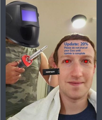 Por su parte, otro vio una semejanza entre el jefe de Facebook y un androide. "Actualización: 20%. Por favor, no apagué su Zucc hasta que se complete la actualización", reza el meme.