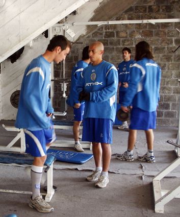 El grupo de 26 jugadores, mayormente de la casa, realizó trabajos en el gimnasio ubicado bajo la tribuna este.