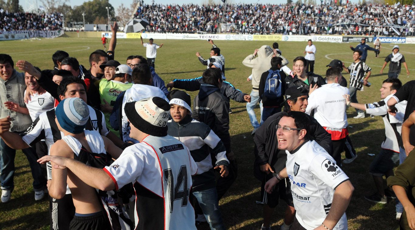 La siguiente instancia el Lobo la empezaría con el pie izquierdo. Ahora el recorrido fue menor, pero no por ello insignificante. Tras viajar 1.332 kilómetros hasta Palpalá, Jujuy, Gimnasia volvió del Norte con un 2 a 1 a cuestas al ser superado por Altos Hornos Zapla. En Mendoza no tuvo problemas para darlo vuelta: 3 a 0 y a la final. El Blanquinegro estaba a 180 minutos de ascender y volver al Argentino A. Triunfo ante Unión y ascenso. Locura total.