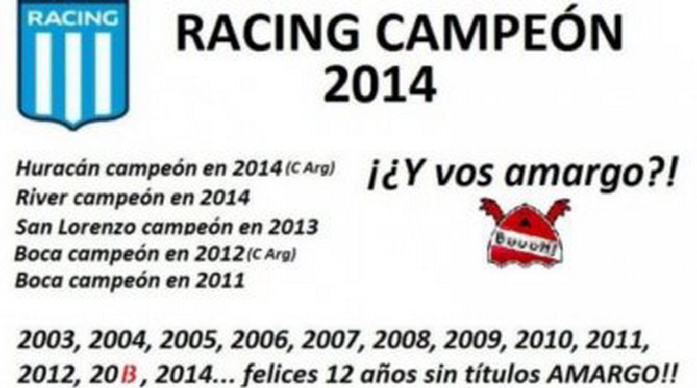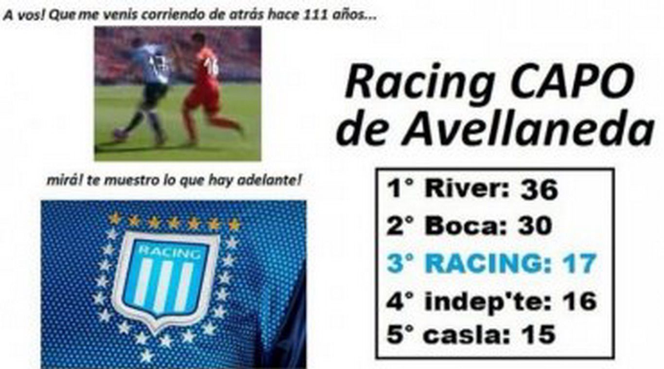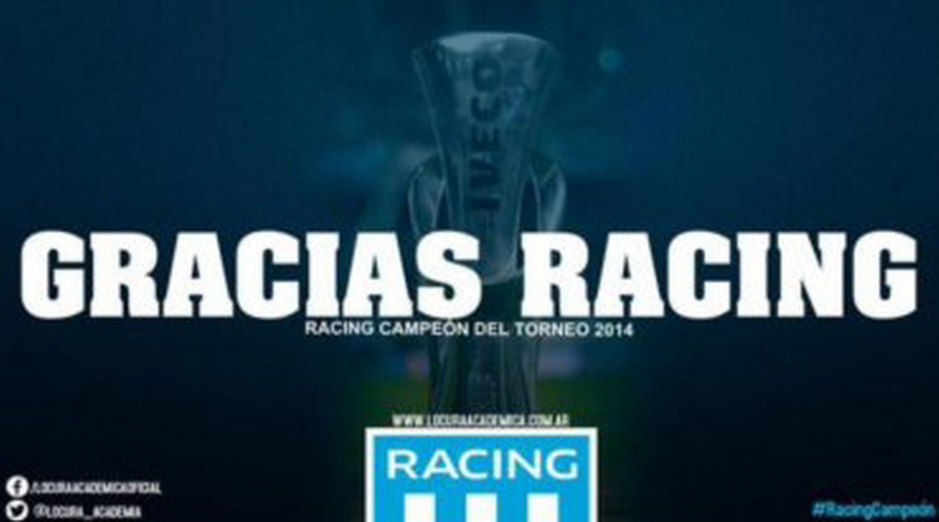 Tras haber esperado 13 años para volver a ser el mejor equipo de la Argentina, los hinchas de la Academia se desahogaron y se acordaron del Rojo, a quien superó en títulos locales ( 17 a 16). Además, hubo cargadas para River por la definición del campeonato.