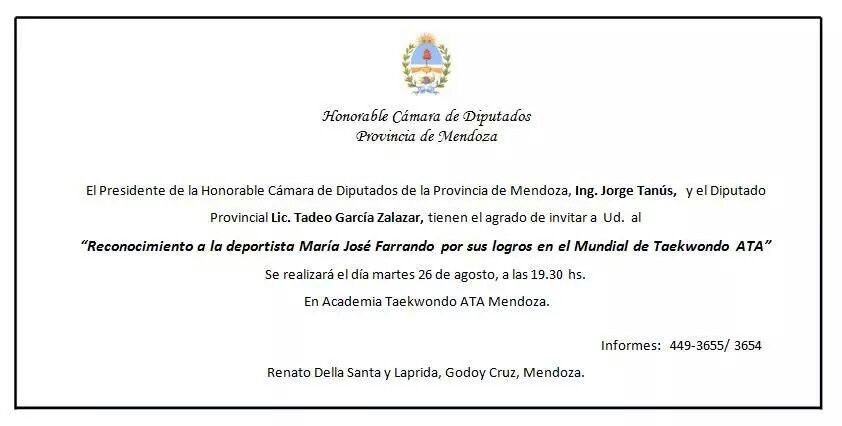 Creo que hay que darle mayor difusión al deporte, hacerlo más conocido. El taekwondo no son solo golpes, es un deporte muy completo el cual sirve para la vida. Es una disciplina en la que te enseñan compañerismo, lealtad y cortesía. Eso la gente mucho no lo sabe. Y me parece que necesita mayor apoyo económico, aunque es complicado. En mi caso fue la Universidad de Mendoza la que me ayudó a poder realizar el viaje. Pero muchos deportistas no logran esa ayuda y se quedan sin viajar.
