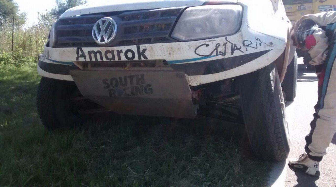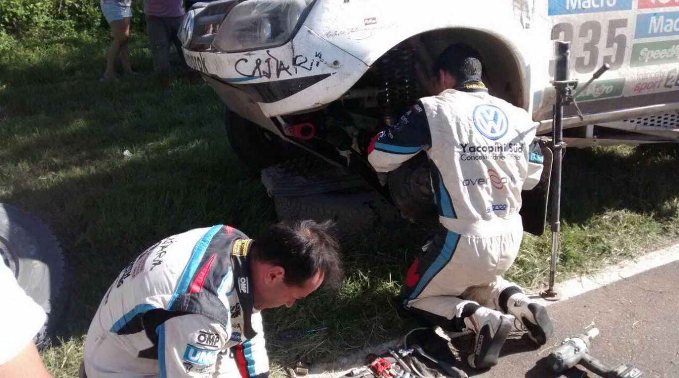 La Volkswagen sufrió daños en la parte delantera, en el costado del navegante y en sus ruedas. Ahora van a reparar todo para llegar al enlace y concentrarse en la última etapa de la competencia.
