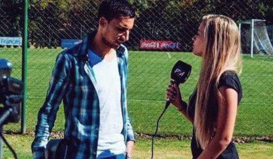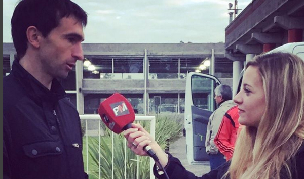Mei Ayliffe, en su rol de periodista, entrevistando a los jugadores de River antes de viajar al Mundial de Clubes en Japón: