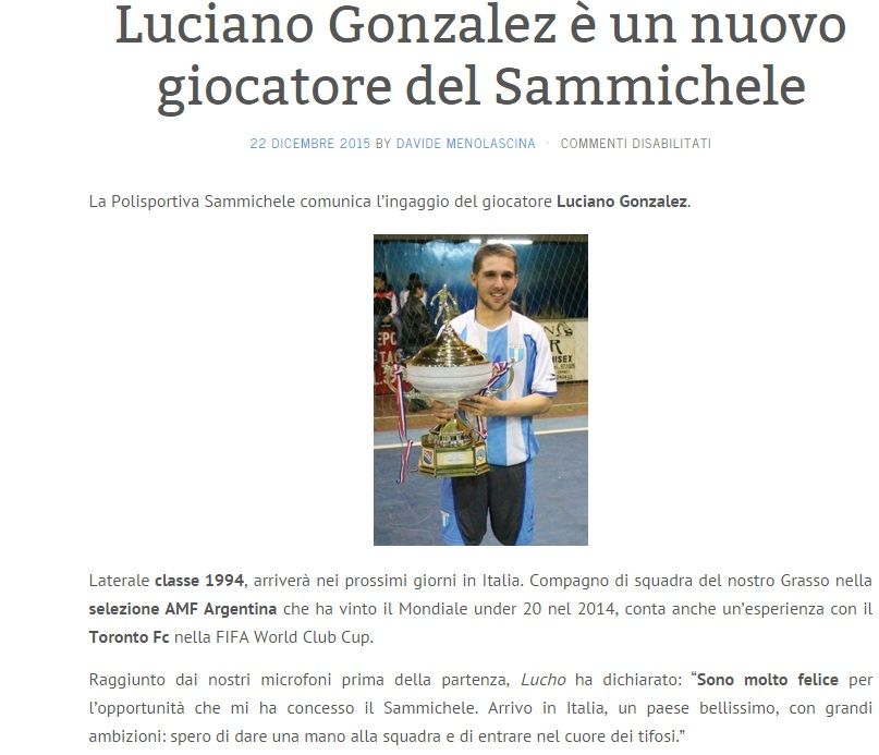 El mendocino Luciano González, jugador del club Alemán y campeón del mundo con el Seleccionado argentino Sub 20, fue contratado por el club italiano Polisportiva Sammichele para el próximo campeonato de la A2 del Calcio Futsal.