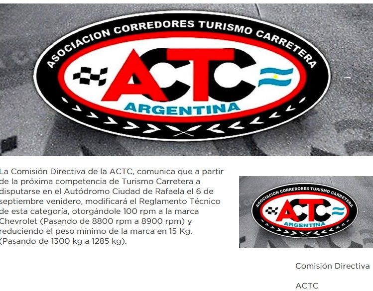 Se acerca la última fecha de la etapa regular del Turismo Carretera y los usuarios de Chevrolet recibieron una buena noticia. La Comisión Directiva de la ACTC informó que habrá cambios para el motor y peso de la marca, para equiparar el reglamento con las restantes marcas. El comunicado dice lo siguiente: