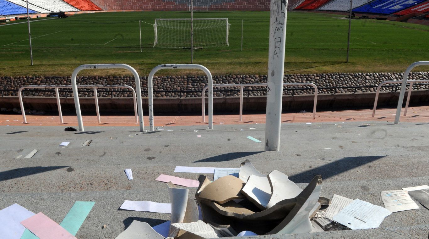 El estadio muestra las secuelas de los graves episodios que se produjeron ayer en el encuentro entre Godoy Cruz y Racing.
