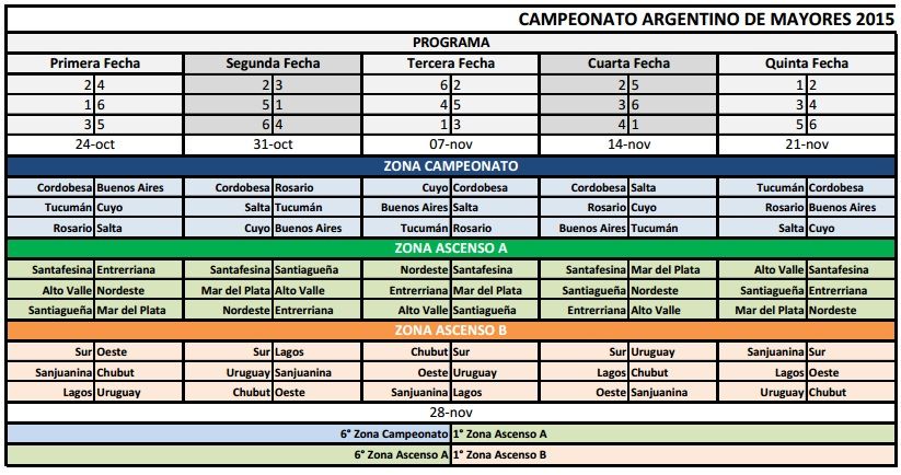 Teniendo en cuenta las elecciones nacionales que se desarrollarán el 25 de octubre, la Mesa Directiva, con la previa intervención de la Comisión de Competencias, resolvió que todas las instancias del Campeonato Argentino de Rugby de Mayores, Zonas Campeonato, Ascenso A y Ascenso B y de M21 Zona Campeonato, inicien el sábado 31 de octubre.