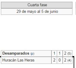 | Central Norte (Salta) | (2) 4 - 4 (3) | Huracán Las Heras |