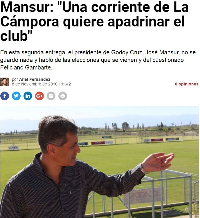 MDZ tuvo la posibilidad de dialogar con el presidente de Godoy Cruz, José Mansur, casi en la finalización del año y el dirigente anticipaba el cierre del año 2016. En aquel momento se animó a hablar del equipo y de las aspiraciones en el próximo año, el estado del estadio Feliciano Gambarte, el Club en calle Balcarce y el predio de Coquimbito. Repasá aquel momento, dividido en dos partes: