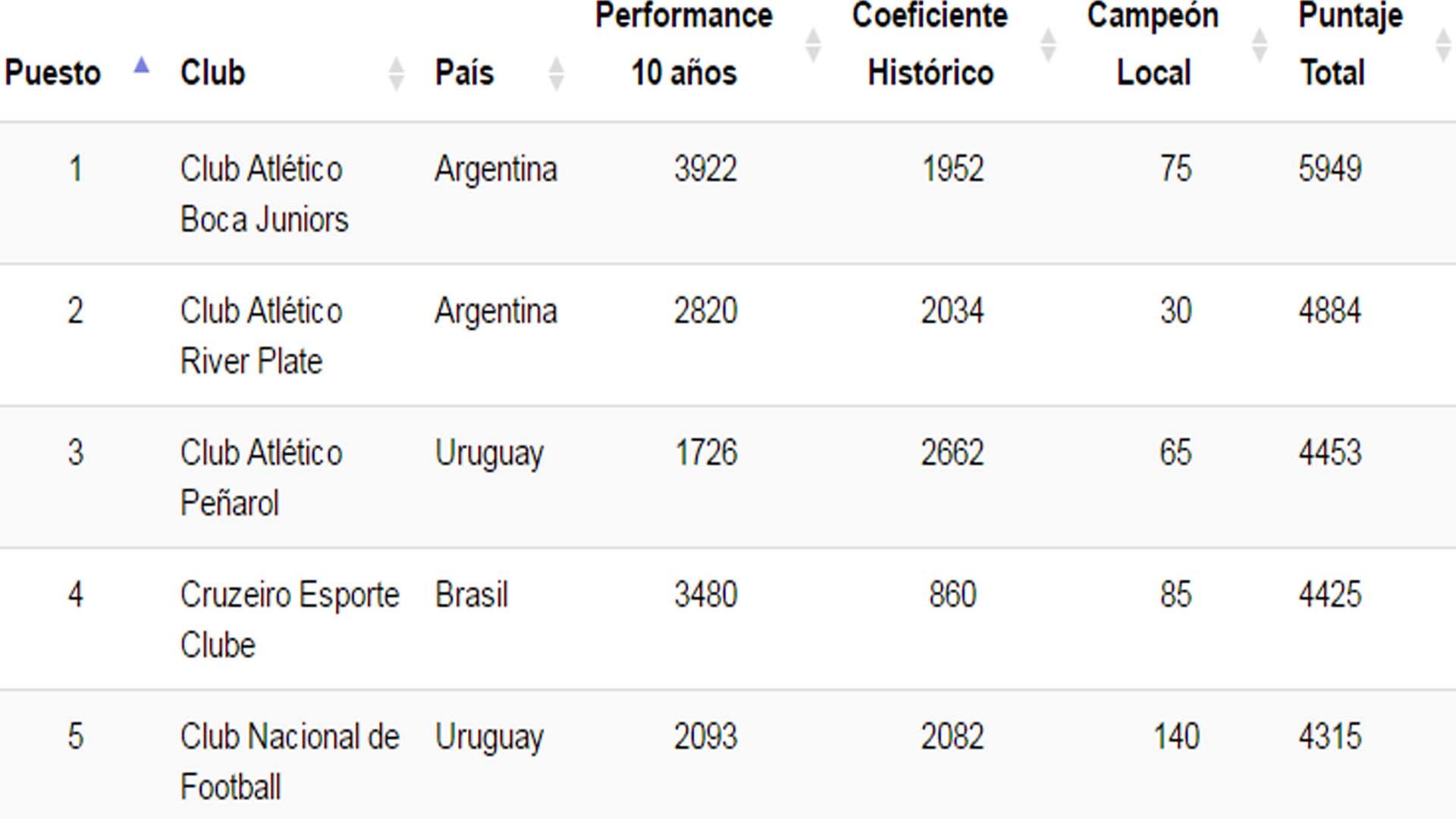 Mientras Boca y River sólo tienen chances de clasificarse a la edición 2017 de la Libertadores si se quedan con la Copa Argentina, este nuevo esquema habilitaría sus presencias de manera automática. El Xeneize ocupa el 1° puesto de esa clasificación y el Millonario el 2°.