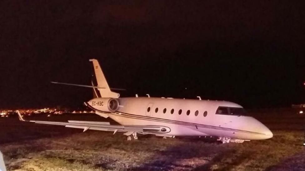 El percance ocurrió cuando el avión del astro del Real Madrid tocó tierra. A continuación, se salió de la pista de aterrizaje por un problema hidráulico del freno izquierdo. Al cambiar su rumbo y salirse de la pista, el tren de aterrizaje del avión se partió y las autoridades del aeropuerto tuvieron que cerrar el espacio afectado durante varias horas.