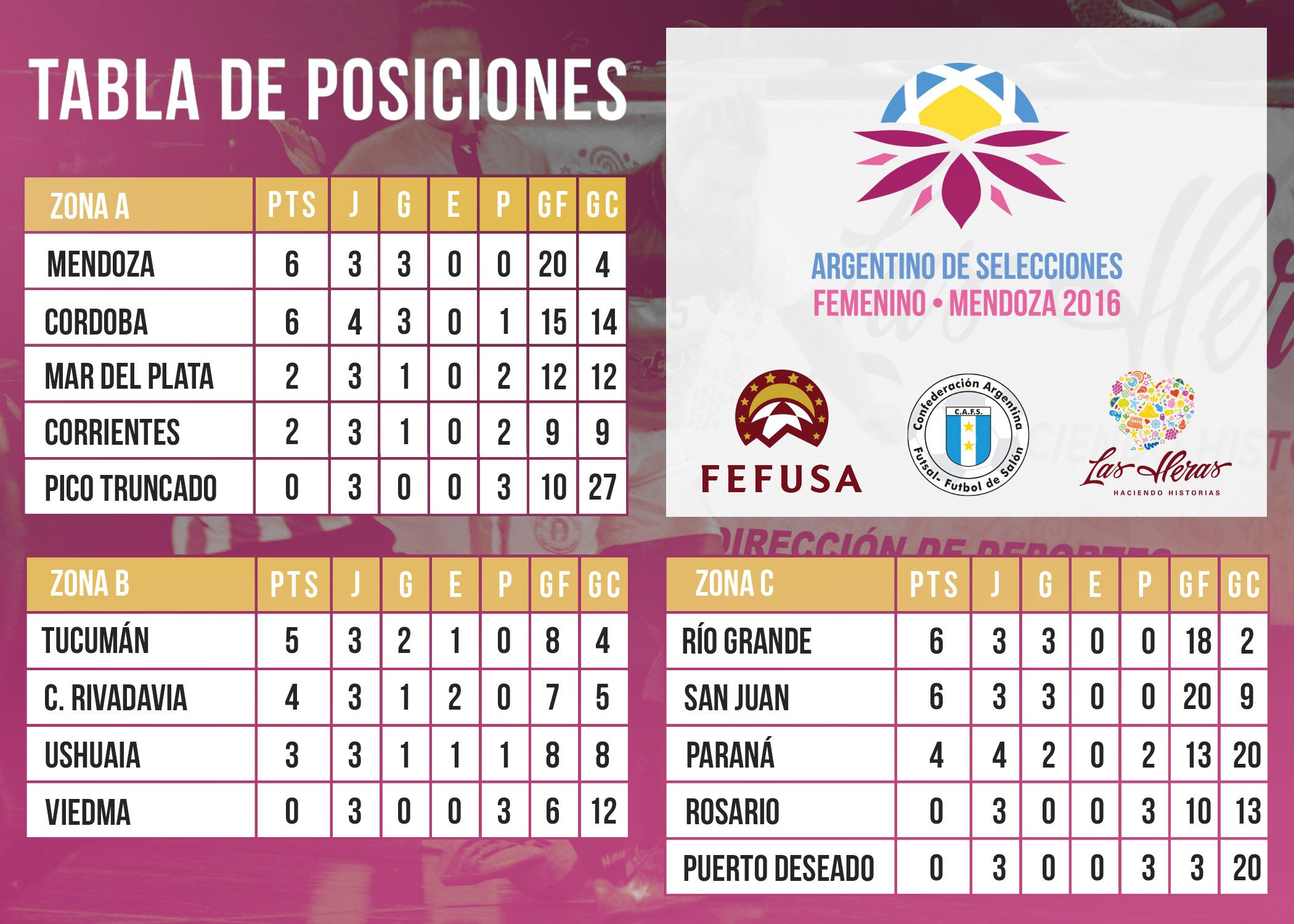 Goles: Romina Gómez 5, Aldana Bambicha, María Poklepovic, Antonella Intemícola, Eugenia Ferrero (Córdoba); Malena Camperi, Nadia Suárez, Romina Fuertes, Yamila Assef (Pico Truncado)