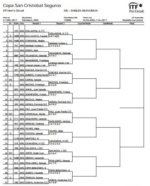 Hernán Casanova (3º) a Mateo Martínez 4/6, 6/2 y 6/3