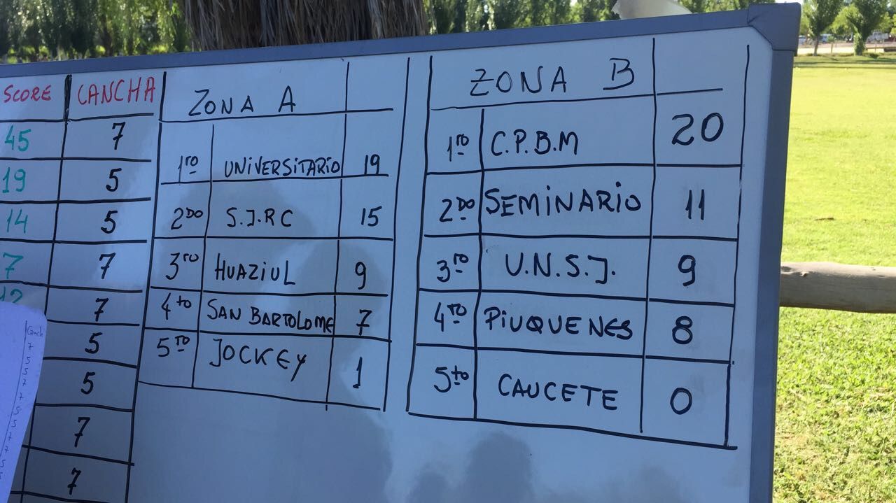 Universitario compartió su zona con San juan, Huazihul, San Bartolomé de Chile y Jockey. En la Zona B estuvo CPBM, Seminario, UNSJ, Piuquenes y Caucete.