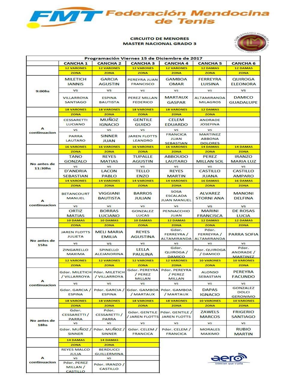 La Federación Mendocina de Tenis dio a conocer la programación del Torneo que reúne a los mejores mendocinos del ranking Nacional y que tendrá como sede al Club Leonardo Murialdo.