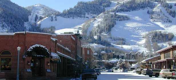 La ciudad de Aspen, con el centro de ski de fondo.