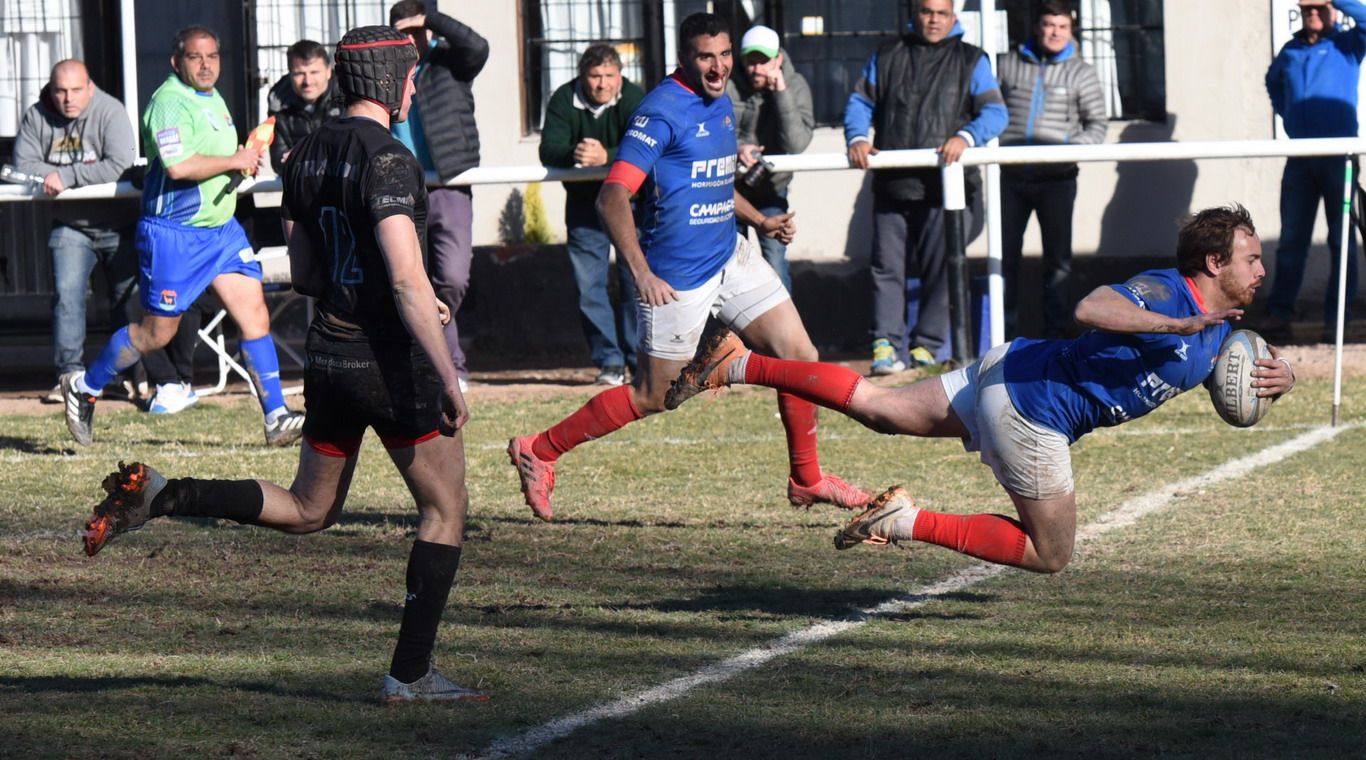Era la tarde de Los Azules ya que dominaron en casi todas las formaciones y se dieron el gusto de marcar un try sobrando con los backs, el que anotó fue el full back Julián Flores con una palomita para el festejo de jugadores e hinchas teqüinos.