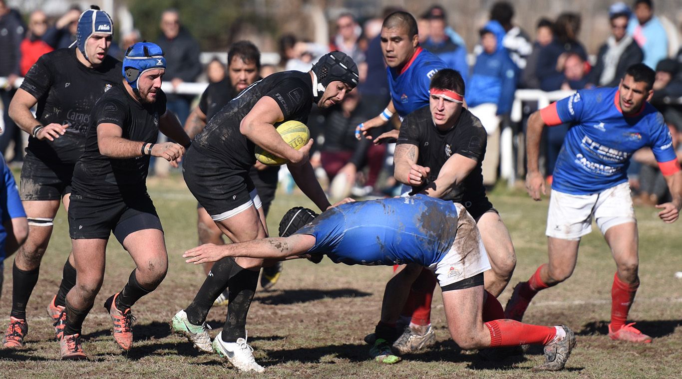 Con mucha actitud los visitantes ganaban la ventaja a través de sus delanteros y cuando la abrían buscaban incorporar algún forwards para desequlibrar y cuando les tocaba defender lo hacían con duros tackles. Sobre el final de la primera parte tuvo la suerte que Emiliano Videla "caranchó" una pelota que habían abierto los backs locales y terminó apoyando en la bandera. La gente local no cabía de su asombro, los dos equipos se irían al descanso con un score de 19 a 3 favorable a la visita.