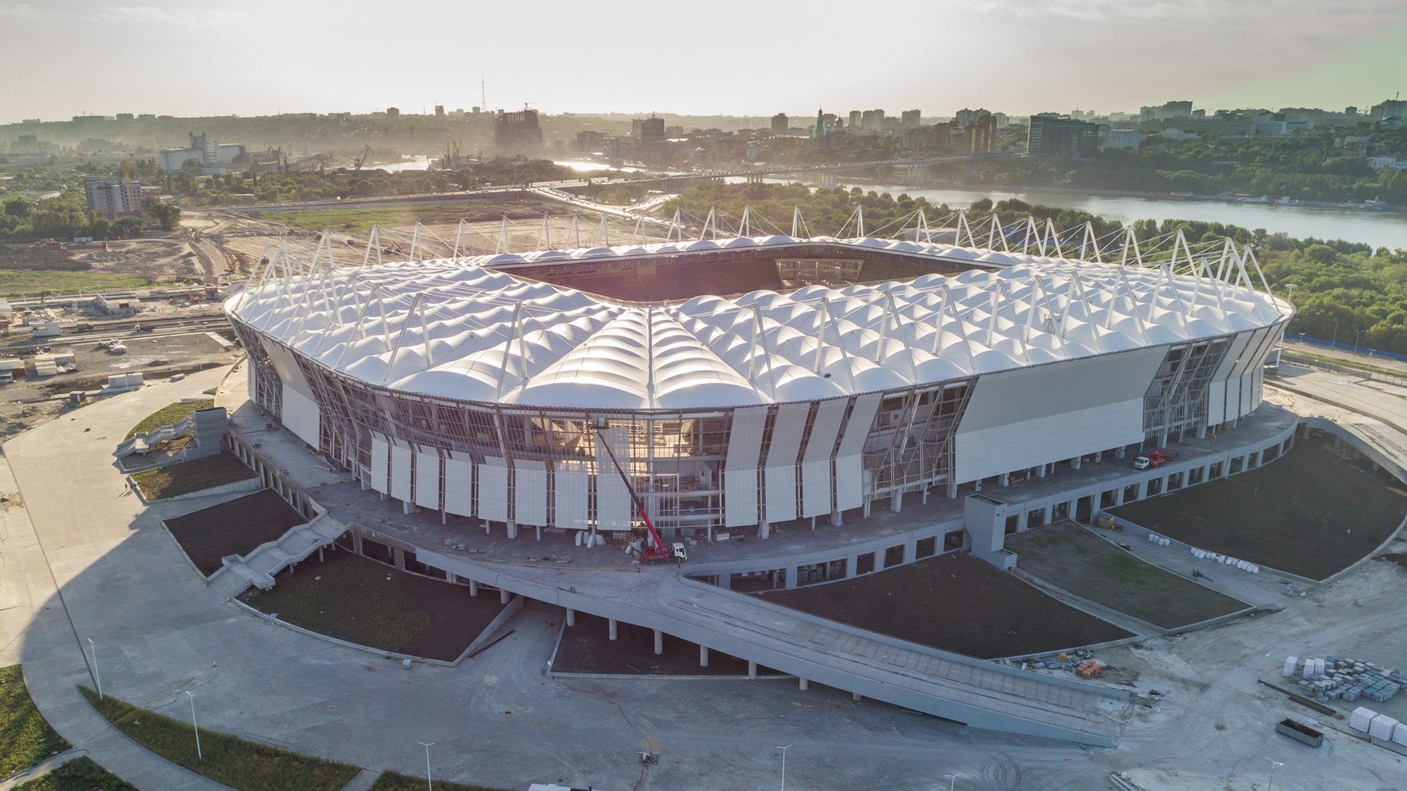 estadio ya están terminadas. Acogerá cuatro partidos de la fase de grupos. Gracias a las buenas temperaturas del verano europeo, el césped está creciendo en el Rostov