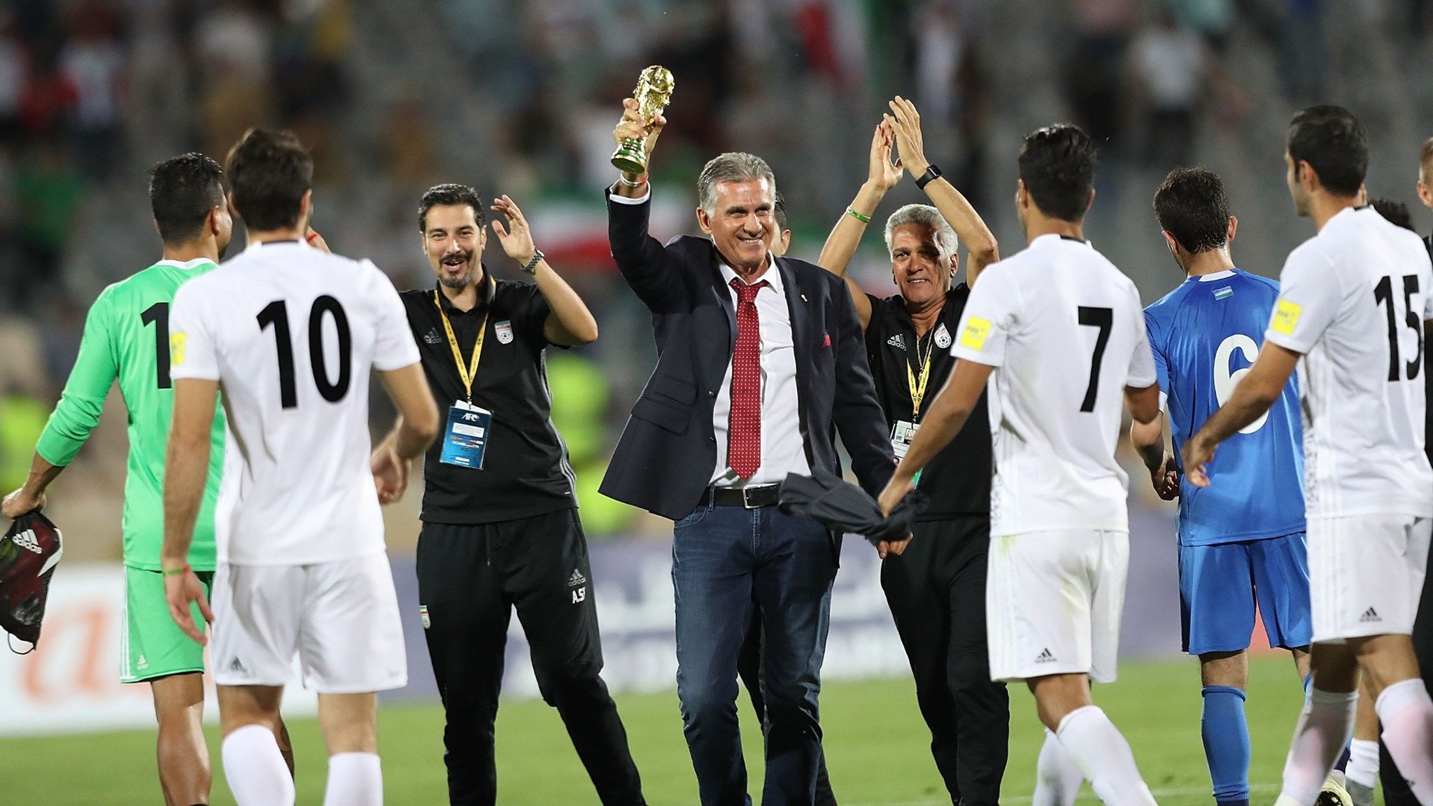 repechaje contra el cuarto de la Concacaf. Quedan dos fechas. Carlos Queiroz, DT de Irán, celebra la clasificación tras vencer a Uzbekistán.