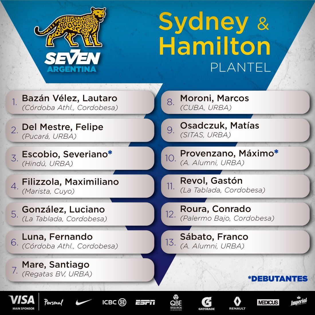 Las inclusiones de los jugadores Severiano Escobio y Máximo Provenzano dentro del listado, sobresalen como las principales novedades, ya que debutarán en el Circuito Mundial de la especialidad, tras haber estado presentes con el equipo de Argentina 7s en el torneo de Punta del Este.