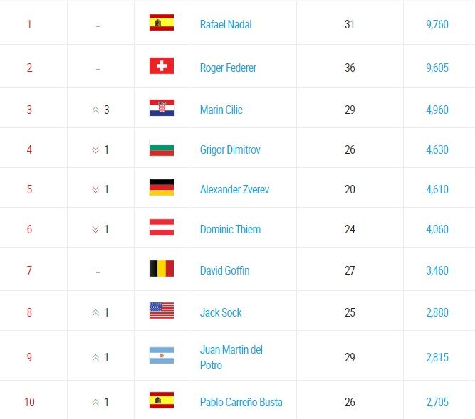 El español, eliminado en cuartos de final, no pudo defender los puntos conseguidos el año pasado por llegar a la definición en Melbourne. Federer repitió el título, por lo que se mantiene con las mismas unidades. De esta manera, la distancia que hace dos semanas era de 995 puntos se esfumó prácticamente por completo.
